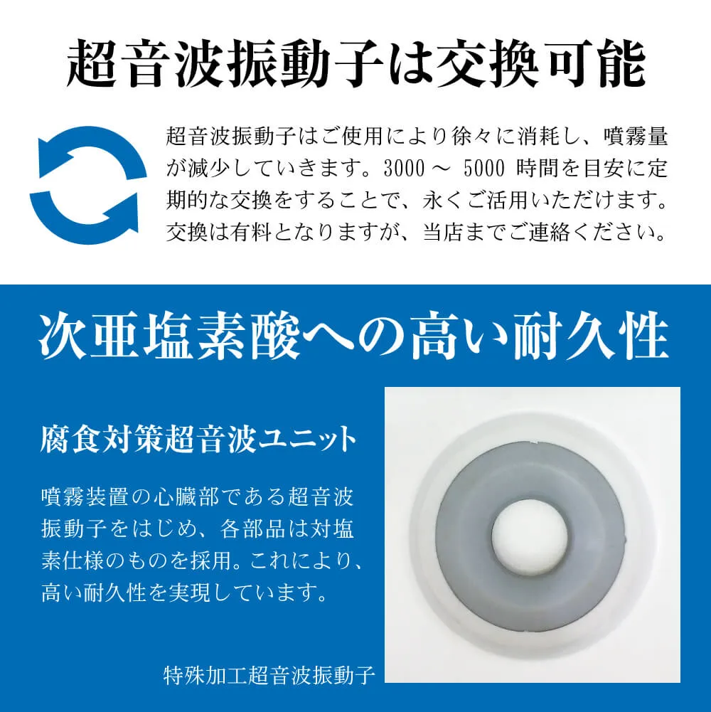 配备耐氯部件的超声波喷雾器(适用于面积达 10 个榻榻米的房间)